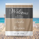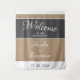 Elegantes einfaches, grau-beiges Skript Hochzeitsempfang Begrüßung Tapestry. Elegantes und modernes Design in beige und dunkelgrau Farben. Trendy Drehbuch in weiß - fügen Braut`s, Groom Namen und Hochzeitstag.