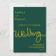 Dieses elegante, grüne und goldene Hochzeitsangebot eignet sich perfekt für eine moderne Hochzeit, das schlichte Design zeichnet sich durch elegante goldene Kalligraphie auf grünem Hintergrund aus.