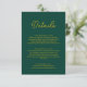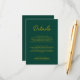 Diese elegante, grüne und goldene Kapselkarte eignet sich perfekt für eine moderne Hochzeit und bietet elegante goldene Kalligraphie auf grünem Hintergrund.