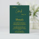 Diese elegante, grüne und goldene Kapselkarte eignet sich perfekt für eine moderne Hochzeit und bietet elegante goldene Kalligraphie auf grünem Hintergrund.