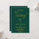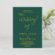Dieses elegante, grüne und goldene Hochzeitsangebot eignet sich perfekt für eine moderne Hochzeit, das schlichte Design zeichnet sich durch elegante goldene Kalligraphie auf grünem Hintergrund aus.