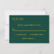 Die elegante, grüne und goldene RSVP-Karte eignet sich perfekt für eine moderne Hochzeit und bietet elegante goldene Kalligraphie auf grünem Hintergrund.