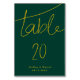 Die elegante Tischnummer in Grün und Gold eignet sich ideal für eine Hochzeit mit modernem Ambiente, das schlichte Design zeichnet sich durch eine elegante Goldkalligraphie auf grünem Hintergrund aus.