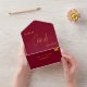 Diese elegante bordeauxrote und goldene Hochzeitseinladung eignet sich perfekt für eine moderne Hochzeit, das schlichte Design zeichnet sich durch elegante Goldkalligraphie auf bordeauxrotem Hintergrund aus.