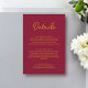 Diese elegante Bordeaux und Goldhackkarte eignet sich perfekt für eine moderne Hochzeit und bietet elegante Goldkalligraphie auf bordeauxrotem Hintergrund.
