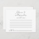 Diese elegante, einfache kalligraphische Hochzeitsratenkarte ist perfekt für eine rustikale Hochzeit. Das schlichte und elegante Design besticht durch klassische und extravagante Schrift-Typografie in Schwarz und Weiß. Diese Karten eignen sich perfekt für Hochzeiten, Brautparty, Babydusche, Graduiertenparty u.v.m. Personalisieren Sie die Karten mit den Namen der Braut und Bräutigam, den Eltern, die Sie werden oder Absolvent.