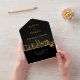 Dieses elegante Schwarz-Gold-Hochzeitsangebot eignet sich perfekt für eine moderne Hochzeit, das schlichte Design zeichnet sich durch elegante goldene Kalligraphie auf schwarzem Hintergrund aus.