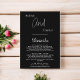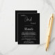Diese elegante, schwarz-weiße Kapselkarte eignet sich perfekt für eine moderne Hochzeit und bietet elegante weiße Kalligraphie auf schwarzem Hintergrund.