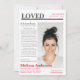 Diese Beerdigungskarte kommt mit einem Zeitungsdesign. Wenn Sie ein Design brauchen, das nicht wie die ganze Erholung ist, schauen Sie nicht weiter. Es ist so konzipiert, dass Sie die beste Präsentation für Ihre Veranstaltung erhalten. Sie werden es auch leicht zu bedienen finden, um eine reibungslose Bearbeitung zu ermöglichen. Sie können ganz einfach Ihren individuelle Name(e) und Ihr Datum hinzufügen, indem Sie auf den "Personalisieren"-Button auf der rechten Seite des Produkts klicken. Durch Klicken auf "Bearbeiten mit dem Design-Tool" können Sie die Farbe und den Stil des Schriftartes ändern.