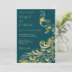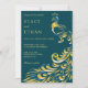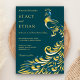 Erleben Sie Ihre Gäste mit dieser eleganten Hochzeitseinladung mit einem schönen Pfau mit moderner Typografie vor einem dunklen aquamarinen Hintergrund. Fügen Sie einfach Ihre Veranstaltungsdetails zu dieser einfach zu bedienenden Vorlage hinzu, um sie zu einer einmaligen Einladung zu machen.