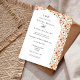 Mit dieser eleganten Hochzeitseinladung laden Sie Ihre Gäste ein, Ihren besonderen Tag zu feiern. Freuen Sie sich auf die blühende Herbstlandschaft in warmen Orangen-, Blau- und Gelbtönen. Das übersichtliche, klassische Layout kombiniert zeitlose Serifen mit anmutigen Skript-Schriftart und schafft so einen anspruchsvollen und romantischen Look. Diese Einladung ist perfekt für Hochzeiten im Herbst oder Paare geeignet, die ein raffiniertes Blumendesign suchen. Sie ist mit Ihren Namen, Ihrem Hochzeitsdatum, Ihrem Veranstaltungsort und Ihren Veranstaltungsdetails für eine wirklich persönliche Touch anpassbar.