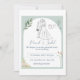 Eine wunderschön gestaltete Hochzeitseinladungskarte, die eine bezaubernde Abbildung einer Braut und eines Bräutigams zeigt, mit einer anmutigen weißen Taube, die einen glänzenden Diamantenring und eine Hochzeitskapelle trägt. Die Karte ist in sanften, hellgrünen und weißen Farbtönen gehalten, die Liebe, Reinheit und neue Anfänge symbolisieren. Ideal für Paare, die eine romantische und einzigartige Touch für ihren besonderen Tag suchen. Einzigartiges Kunstwerk mit Braut, Bräutigam und Taube. Elegante hellgrüne und weiße Farbpalette. Symbolische Diamantring- und Hochzeitsband-Illustration. Romantisches und zeitloses Design für Hochzeiten. Eine perfekte Mischung aus Eleganz und Einfachheit.