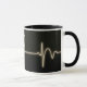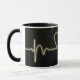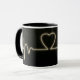 Elegante Tasse aus Elektrokardiogramm mit schwarzem Hintergrund. Lernen Sie es kennen oder geben Sie es als Geschenk für Ihren Arzt.