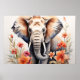 Elegante Elefanten und florale Wasserfarben Kunst, Poster