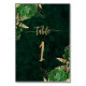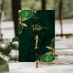 Elegante Emerald Green Gold Floral Wedding Tischnummer