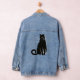 Elegante Enigma: Künstlerische schwarze Katze Jeansjacke