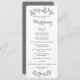In unserer koordinierenden Einladungssuite schmücken die prächtigen Zweige der gesäumten Eukalyptus dieses schlicht elegante und moderne Hochzeitsprogramm. In sanften, grau-grünen Farbtönen auf Weiß mit grauem Text ist dieses Design minimalistisch und trendig für die heutige Braut. Dieses feine Design ist perfekt für jede Hochzeit im Freien oder Garten geeignet und wird in eine ganze Hochzeitssuite mit Papierartikeln für ein wunderbar abgestimmtes Thema integriert.