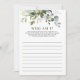 Elegante Eukalyptus Floral Brautparty Game Card Einladung