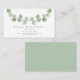 Ein minimalistisches elegantes Design mit einem abgerundeten grünen Eukalyptusblattzweig, der über die Oberseite mit den Details unten läuft. Sie können den Text leicht personalisieren und auch den Stil und die Farben des Schriftartes ändern, wenn Sie möchten, sowie den grünen Hintergrund auf der Rückseite, indem Sie auf Weitere Einstellungen klicken.
