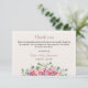 Eine einfache, elegante Trauer- und Gedenk-Dankeskarten zum Überreichen während oder Versenden nach der Beerdigung. Dekorative und einfache Eukalyptusblätter und rosa Rosen auf cremeweißem Hintergrund. Eukalyptus symbolisiert Heilung, Stärke und Wiederherstellung. Ergibt ein großartiges Andenken. Fügen Sie Ihre Dankesnachricht hinzu.
