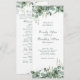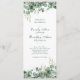 Eleganter Eukalyptus schätzt die Vorder- und Rückseite dieses Hochzeitsprogramms. Der Drehbuch-Schriftart und Ampere und Sets ein traditionelles, aber modernes Thema für Ihren Hochzeitstag. Personalisieren Sie alle Informationen einschließlich der Zeremonie Details und Teilnehmer auf der Rückseite mit dem gleichen Script-Schriftart