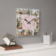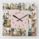 Elegante Familienfoto Collage Blush Pink Keepake Quadratische Wanduhr