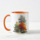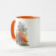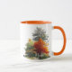 Stilvolle Elegante Schönheit und Essenz einer Herbstwald-Tasse, die die Schönheit der Natur mit zwei Bäumen im Wald, jedes mit verschiedenen Farben von Blätter. Es gibt einen sichtbaren Weg zwischen den Bäumen, der das Potenzial für Wanderungen oder Spaziergänge durch den Wald nahe legt. Mitten in der Szene ragt ein Orangenbaum hervor, der die lebhaften Farben der Schönheit der Natur noch verstärkt. Dieses Kunstwerk bringt die Ruhe und Schönheit der Natur in jeden Raum. Diese natürliche Tasse ist perfekt für ein personalisiertes Geschenk für Hochzeiten, Geburtstage und andere Veranstaltungen.