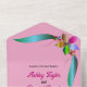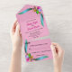 Diese elegante blumengeschmückte Einladung eignet sich perfekt für eine moderne Blumenhochzeit. Das romantische Design besticht durch farbenprächtige und glänzende Imitate, Rose mit eleganter schwarzer Typografie auf einem rot-rosa Hintergrund.