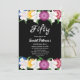 Diese elegante Blumengeburteinladung eignet sich perfekt für einen modernen Blumengeburtstag im Sommer. Das romantische Design ist in blauen, gelben, lila und bordeauxfarbenen Rose gehalten, die mit einer eleganten, weißen Typografie auf schwarzem Hintergrund verziert sind.