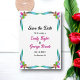Diese elegante Blumenhochzeit erspart die Einladung zum Datum und ist ideal für eine moderne Blumenhochzeit. Das romantische Design besticht durch farbenprächtige und glänzende Imitate, Rose mit eleganter schwarzer Typografie auf weißem Hintergrund.