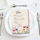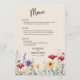 Elegante farbenfrohe Wildblumen Beige Hochzeit Menükarte