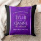 Feiern Sie den 12. Seidenhochzeitstag mit diesem stilvollen Kissen! Elegante Schriften auf einem luxuriösen, lila Seidenhintergrund, umgeben von schwarzen Bars, verleihen diesem besondere Anlass und Meilenstein eine unvergessliche Touch. Passen Sie sich mit Namen, Ehedaten und Glückwunschnachrichten an. Umkehrung zeigt identisches Design. Design © W.H. Sim. Weitere Informationen unter zazzle.com/expressionsoccasions