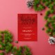 Elegante Feier Weihnachts-Einladung. Mit echter Goldfolie, rotem Glitzer und modernem Design mit Kalligrafietext.
