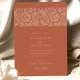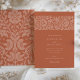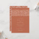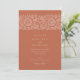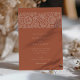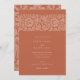 Diese wunderschön gestaltete Hochzeitseinladung besticht durch eine warme Terrakotta-Kulisse mit aufwändigen Blumendesigns, die eine einladende und raffinierte Ästhetik schaffen. Die Vorderseite der Einladung zeigt elegante Blumendekoration über die Spitze, mit raffinierter Typografie, die die Informationen über die Hochzeit. Der Rücken setzt das Thema mit einer harmonischen Mischung von Blumenmustern in passenden Farbtönen fort, zusammen mit personalisierten Initialen für eine maßgeschneiderte Touch. Dieses Hotel ist ideal für Paare, die einen modernen und rustikalen Charme vereinen möchten. Freuen Sie sich auf die reiche Farbenpalette und das detaillierte Design.
