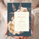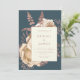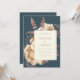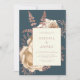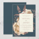 Diese elegante Hochzeitseinladung besticht durch einen romantischen Blumenstrauß in Elfenbein mit Rose-Gold-Imitat-Folie und Glitzer-Blattwerk auf dunkelblauem aquamarinem Hintergrund. Pink-Rose in stylischen Schriftart auf einem ElfenbeinRechteck anpassen. Die Rückseite der Karte ist aquamarin.