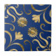 Elegante Floral Damask Navy Blue & Gold Sonnenblum Fliese