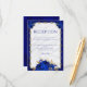 Mit dieser eleganten Einladungskarte mit vergoldetem Filigree-Rahmen und weicher Satin, gekrönt mit blauen Rose, erhalten Sie wichtige Informationen über Ihren Hochzeitsempfang. Der simulierte, königsblaue metallische Hintergrund unterstreicht das luxuriöse Gefühl.