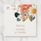 Wunderschöne Gastgeschenk Hochzeit-Tags mit ein wenig "danke", einige Namen in dunklem Ocker, vor einem schönen schicken Elfenbeinhintergrund und Aquarellblumen-Anordnung, die ein Gefühl von Freude und Eleganz auslöst. Auf der Rückseite befinden sich zwei Initialen nebeneinander, vor einem wiederholten Elfenbeinhintergrund.