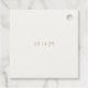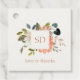 Wunderschöne Gastgeschenk Hochzeit-Tags mit einigen Initialen in dunklem Ocker, Set in einem schönen Elfenbeinplatz mit hellen ockerfarbenen Rahmen. Eine schöne und farbenfrohe Blumenausstellung im Hintergrund Set ein elegantes und fröhliches Ambiente. Auf der Kartenrückseite ist das Ereignisdatum oder, falls gewünscht, kurzer optionaler Text enthalten.