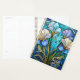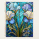 Eleganter personalisierter Planer 2025 mit Spiralbindung und einem Cover mit einem Art-Nouvea Farbglas-Look-Äquivalent in Töne von Blues und Purpur, die Reiseschichten darstellen. Der Text ist vollständig personalisierbar, um den Namen Ihrer Wahl hinzuzufügen.