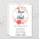 Elegante Blumenhochzeit Sichern Sie die Datumskarten (5 Zoll x 7 Zoll) mit schönem Kranz und veränderbarem Text auf weißem Hintergrund