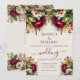 Dieses elegante Blumendesign besticht durch einen goldenen Rahmen, der von beigen und bordeauxfarbenen Rose umgeben ist. Es bietet außerdem einen cremig-beigen Hintergrund und einen goldenen Schriftart, der auf Wunsch farblich verändert werden kann. Auf der Rückseite werden auch die Rose und die ersten Initialen von Bride und Groom angezeigt.