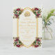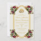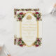 Dieses elegante Blumendesign besticht durch einen goldenen Rahmen, der von beigen und bordeauxfarbenen Rose umgeben ist. Es bietet außerdem einen cremig-beigen Hintergrund und einen goldenen Schriftart, der auf Wunsch farblich verändert werden kann. Auf der Rückseite sind auch der goldene Rahmen, die Rose und die Namen der Braut und des Bräutigam zu sehen.