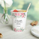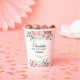 Stilsichere rustikale rosa Rosen, feminine Blumen-Tischdekorationen zum 90. Geburtstag - personalisierte Papiertassen mit Namen.
