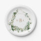 Elegante Foliage Gold Geometric Monogram Wedding Pappteller
