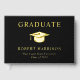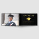 Elegantes Gästebuch mit schwarzer Graduiertenschrift, die Ihre Wahl auf Goldfolie, Silber oder Rose, Graduate Cap, Graduate und den Namen, Schule und Klassenjahr des Absolventen in klassischer Serif Typografie und ihr Foto auf der Rückseite enthält.