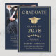 Elegante Foto Blau Gold College-Abschlussfeier Einladung