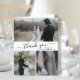 Elegante, stilvolle Minimalistische Hand Lettered Wedding Foto Collage Danke geklappte Karte. Diese Kartenvorlage enthält drei (3) Foto vorne und ein (1) Foto innen. Mit dem Text "danke" in einer hübschen Hand schreiben Typografie Skript Schriftart Skript-Schriftart mit Swashes in schwarz auf weißem Hintergrund. Personalisieren Sie den individuelle Name und danken Sie Ihnen Nachricht. Wenn Sie lieber Ihre Notiz handschreiben, löschen Sie einfach den Beispieltext, um mehr Platz zu machen. Wenn Sie Hilfe oder Match-Element benötigen, schreiben Sie bitte dem Designer!