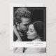 Feiern Sie Ihren besonderen Tag mit unserer eleganten Foto Frame Wedding Invitation Card. Die Vorderseite weist personalisierte Namen und das Hochzeitsdatum auf, die elegant in schwarzen Sans serif in weißer Blockform dargestellt werden, ergänzt durch ein volles Paar Foto Hintergrund in vertikaler Ausrichtung. Ein zarter Rahmen in hellgrau fügt eine Touch von Eleganz hinzu. Auf der Rückseite sind die Hochzeitsdetails wunderschön in Schwarz Sans Serif und Script Schriftart Typografie vor einem knusprigen weißen Hintergrund präsentiert. Diese Einladungskarte ist ideal für die Einladung von Lieben, sich an Ihrem freudigen Anlass zu beteiligen.