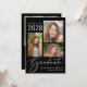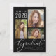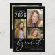 Elegante Schwarz-Graduiertenparty mit 3 Foto-Collage und "Graduate" in einer stilvollen weißen Schrift und dem Namen, dem Jahrgang und der Schule oder der Universität in schlichter, moderner weißer Typografie. Auf der Rückseite fügen Sie ein zusätzliches Foto und die Graduierungsparty Details.